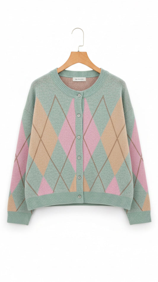 Cárdigan de punto jacquard con rombos en tonos pastel