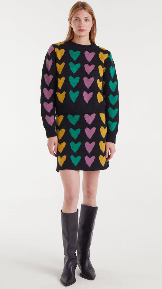 Falda corta de punto jacquard con estampado cupido lines