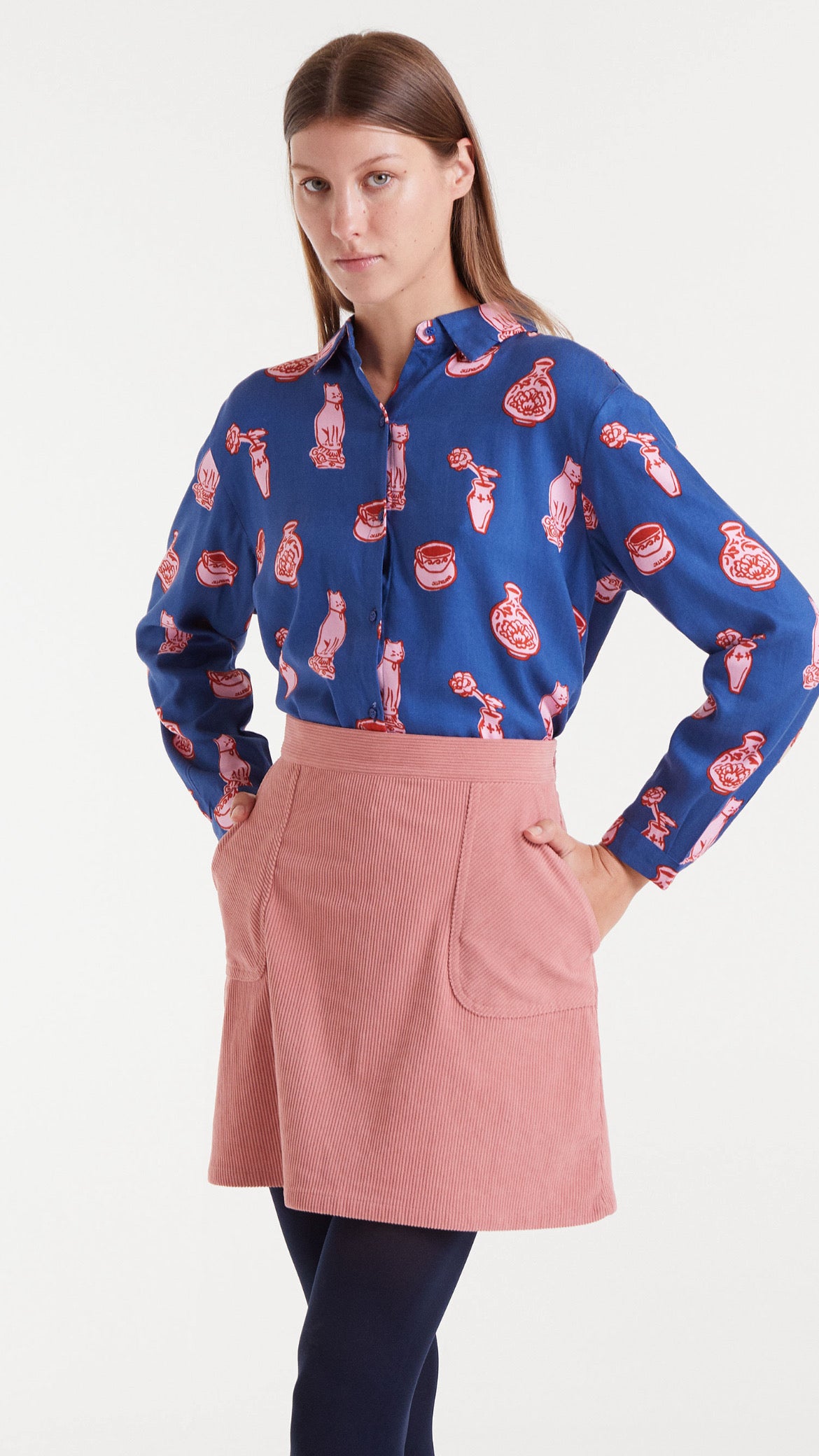 Esta camisa no pasará desapercibida gracias a su original estampado porcelain en tonos azules y rosas. Con cuello camisero clásico y manga larga, combina comodidad y estilo en una prenda versátil que podrás llevar tanto en looks casuales como más arreglados.