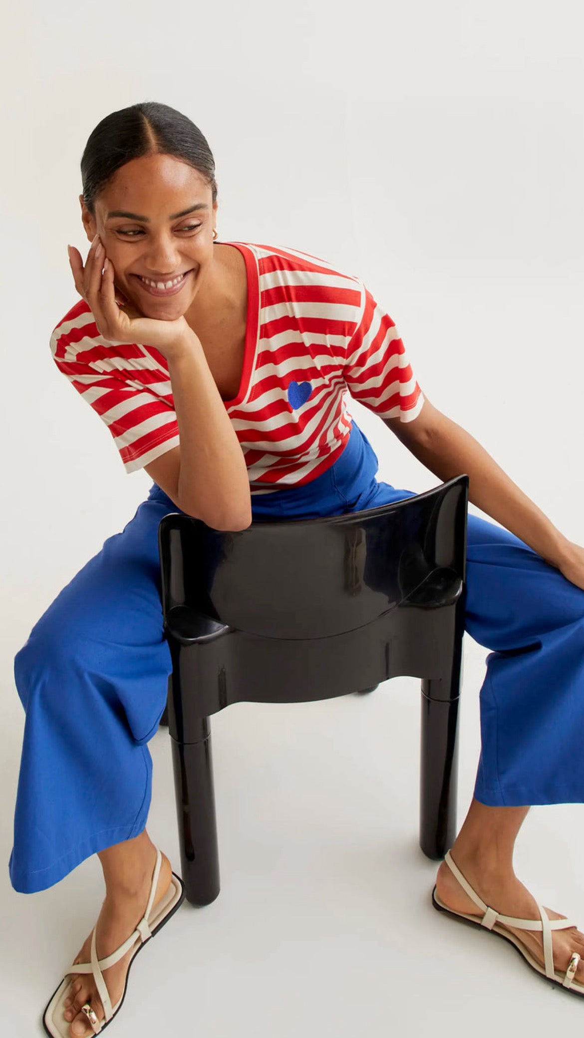 Camiseta con estampado de rayas rojas con bordado de corazón