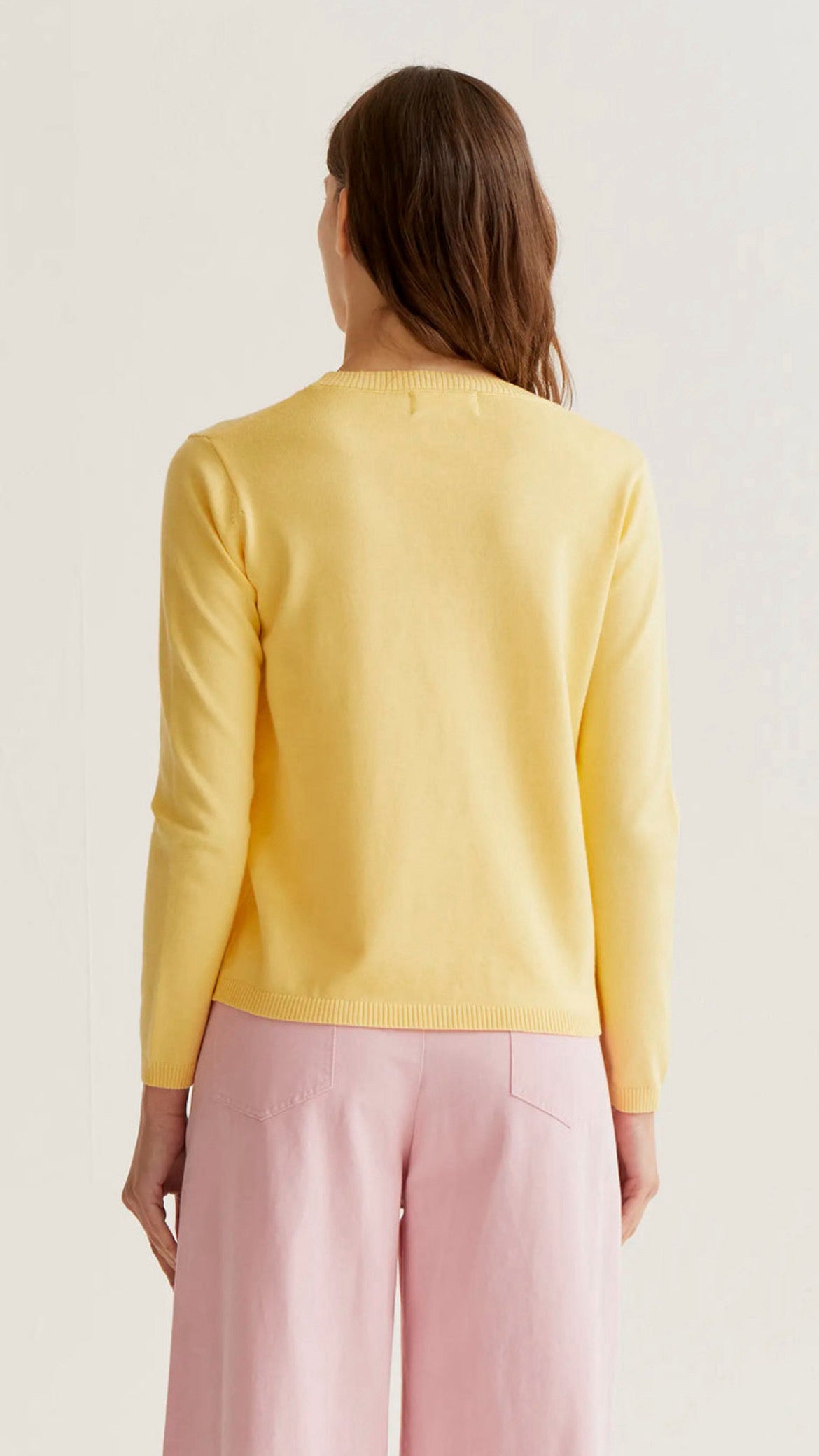 🌼 Jersey confeccionado en tejido de punto amarillo, una prenda suave y luminosa perfecta para aportar color a tus looks de temporada.