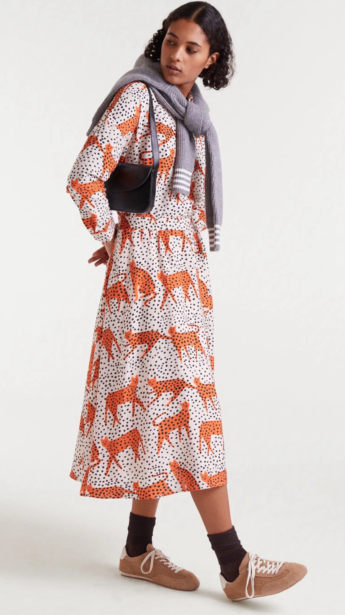 - 🎨 Estampado exclusivo: Gatos naranjas sobre base blanca con lunares negros.