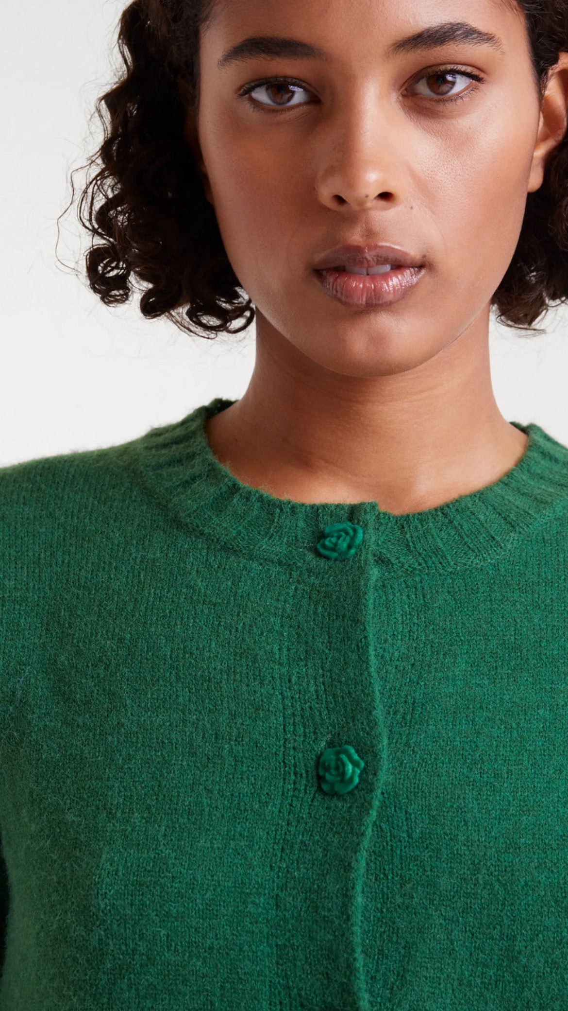 redondo y botones en forma de rosa 🌹. Un básico imprescindible que combina elegancia, comodidad y versatilidad. Su tejido suave y su diseño atemporal lo convierten en la prenda perfecta para completar cualquier look, desde el más casual hasta el más sofisticado. Ideal para tus outfits de diario o para dar un toque especial en ocasiones más formales.