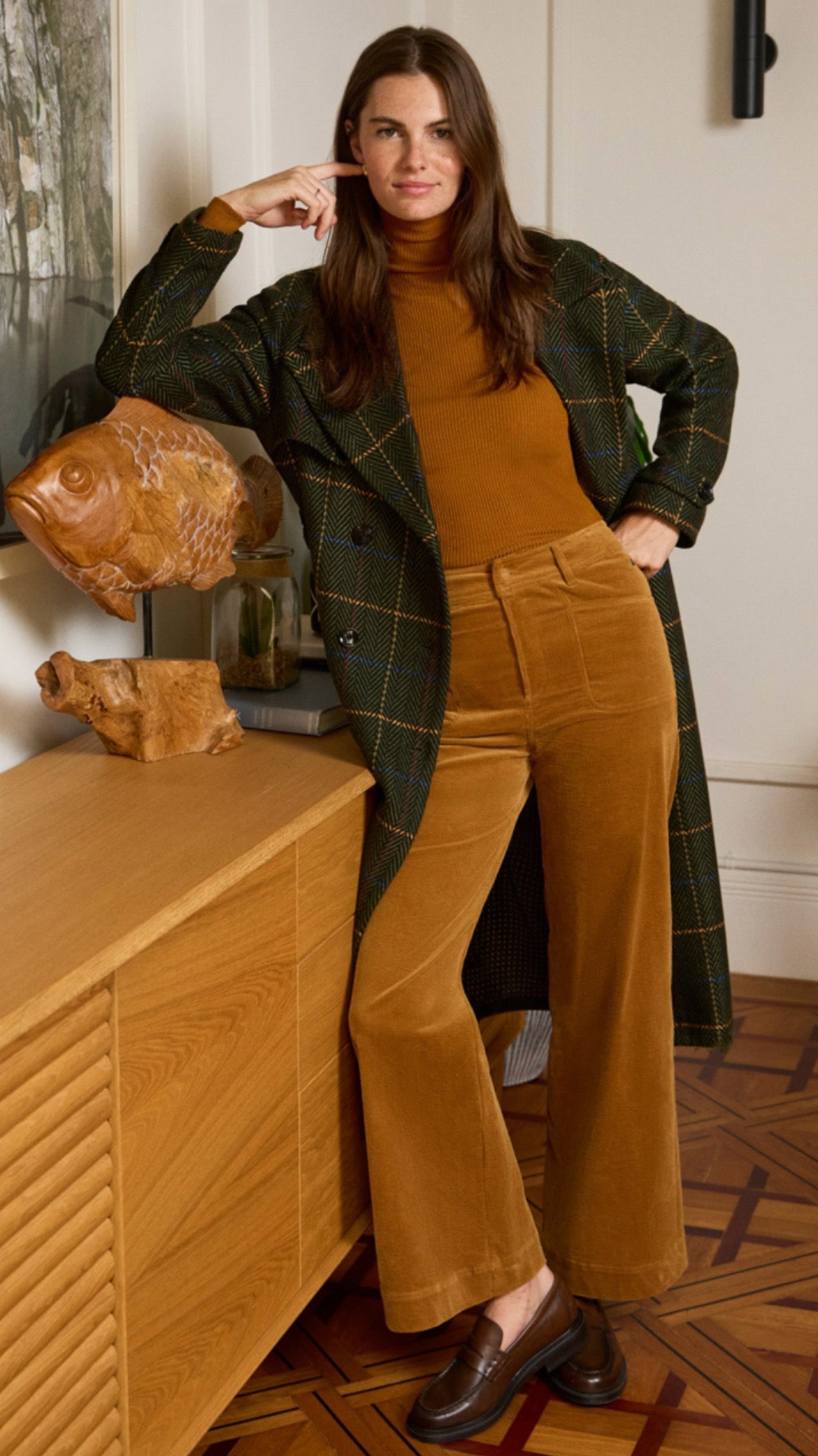Un básico con personalidad propia. Este jersey de canalé en tono ocre cálido aporta luz instantánea al rostro y eleva cualquier look sin esfuerzo. Su cuello alto estiliza, el punto es suave y agradable al tacto, y el ajuste es cómodo pero con esa estructura que queda impecable bajo americanas, gabardinas o abrigos.