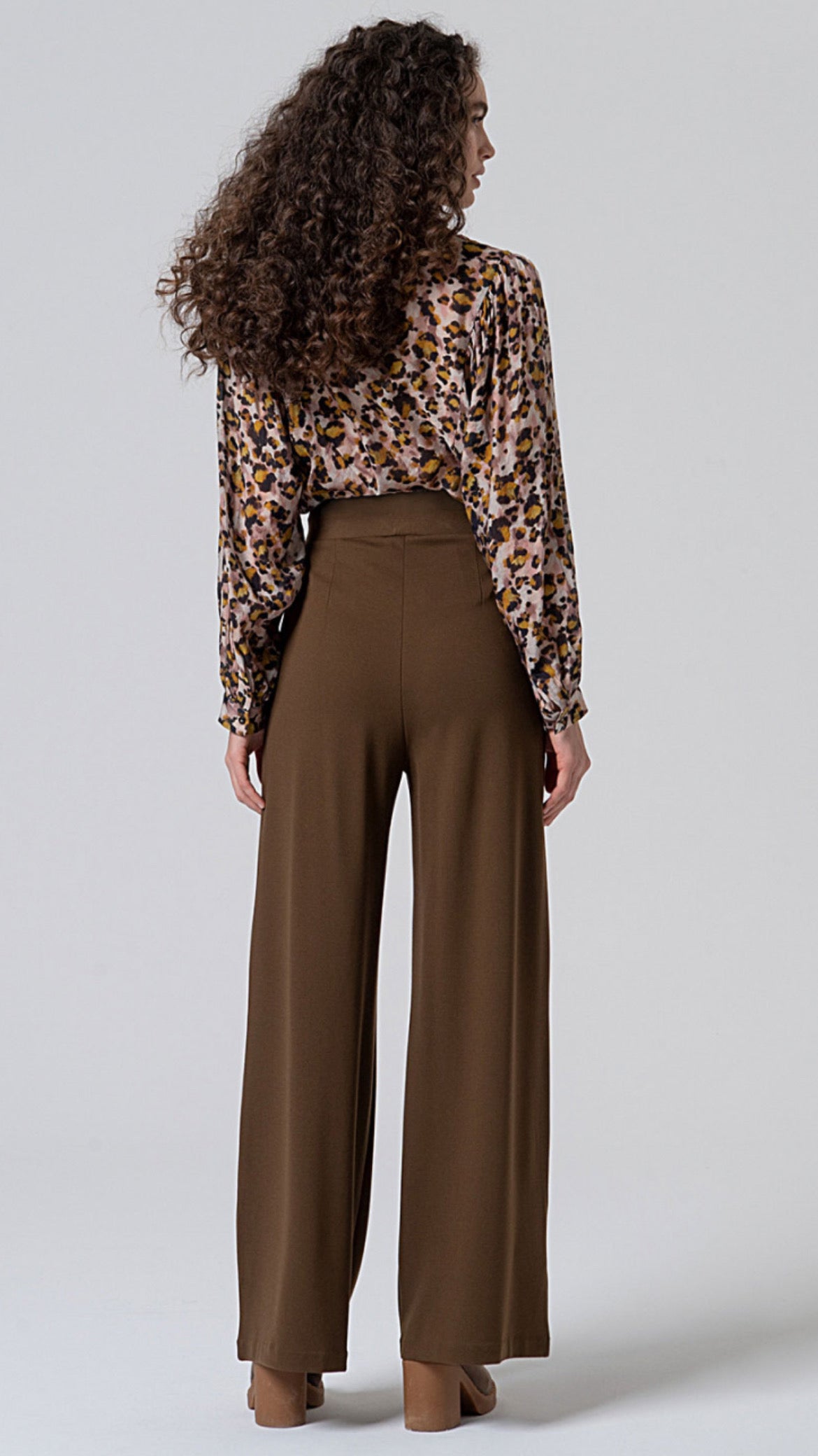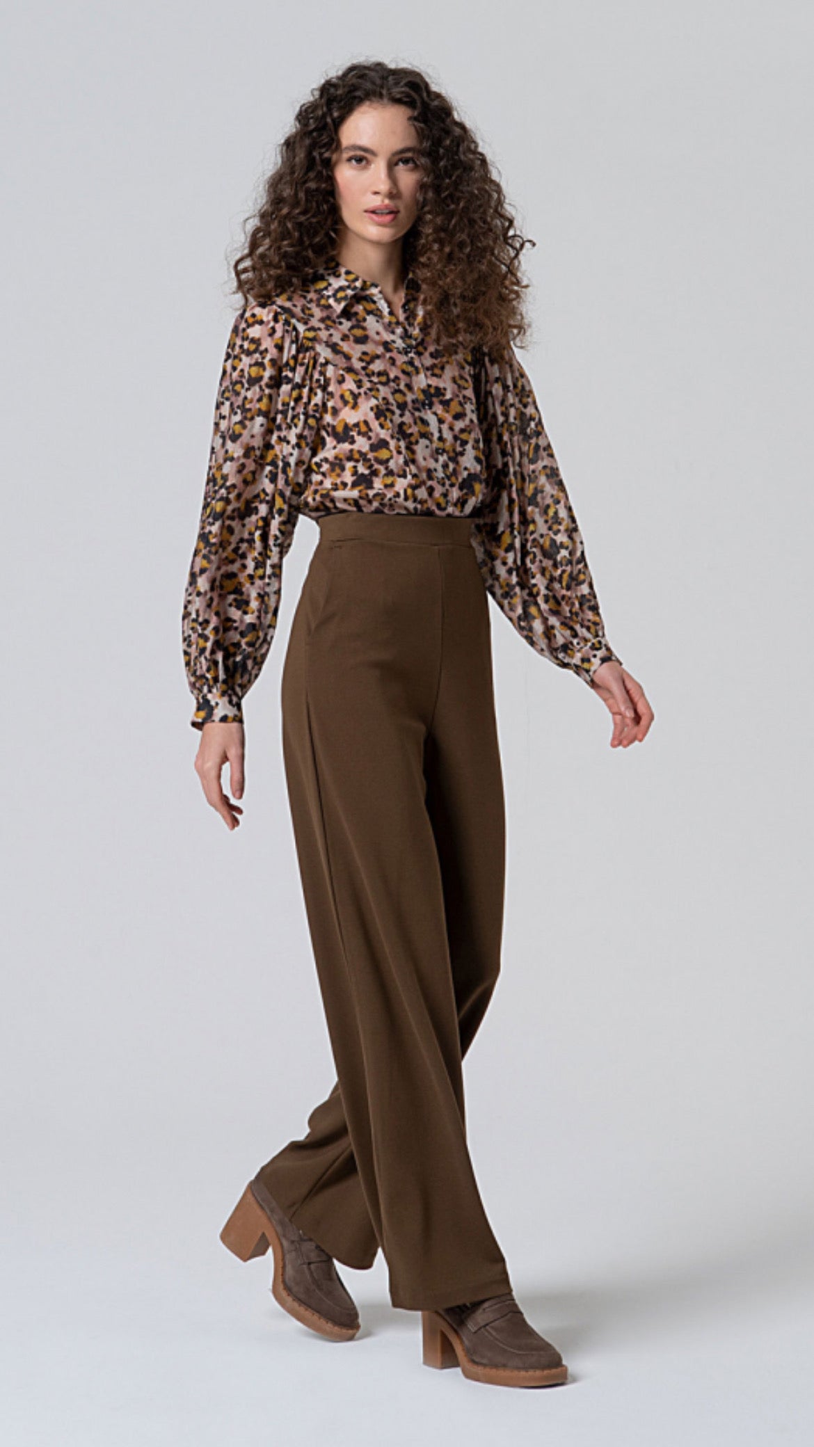 Pantalón de línea fluida y cintura alta sin cremalleras ni botones — cómodo como un pantalón de punto, sofisticado como un sastre. El efecto piernas interminables está garantizado.