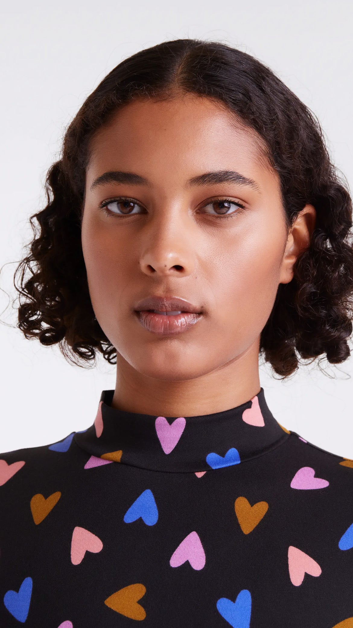 Vestido negro de manga larga con estampado de corazones multicolor 💜💙💗✨. Con cuello ligeramente subido y corte midi fluido, es una prenda cómoda y con mucho estilo para llevar tanto de día como de noche.